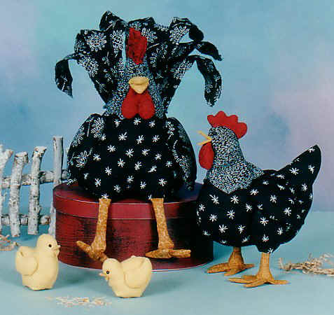 5" hen & rooster, great for fabric scraps!